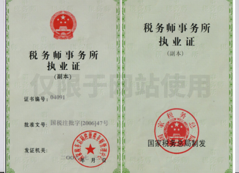 国家税务总局批准执业证书04091(执业门槛高)