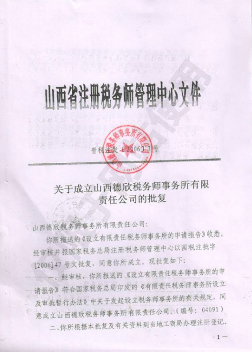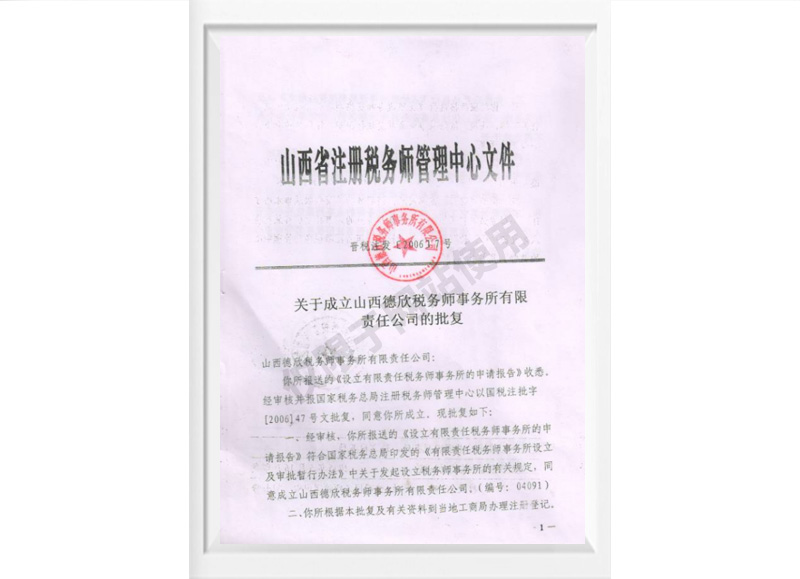 原山西省国家税务局批准成立的文件